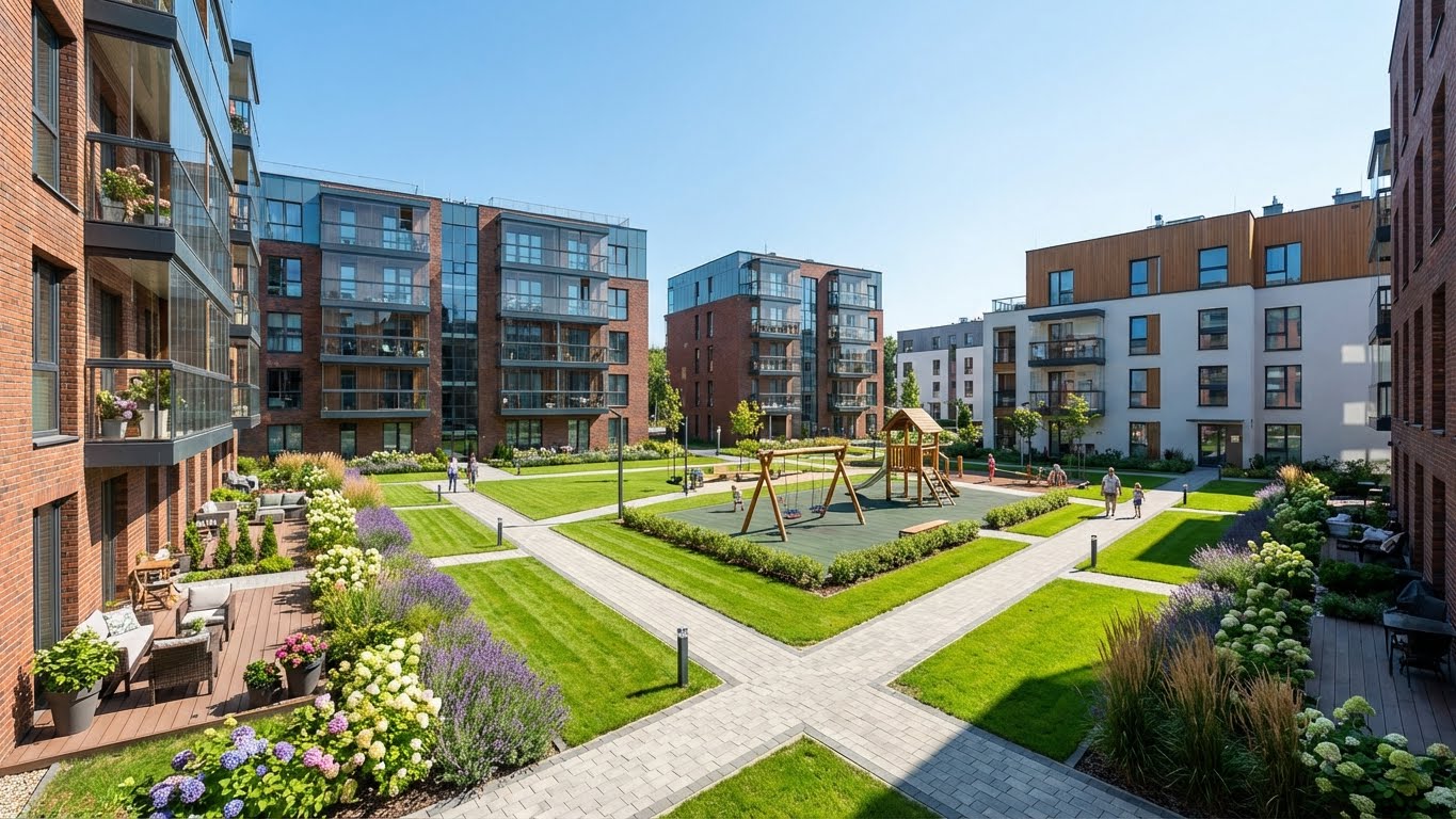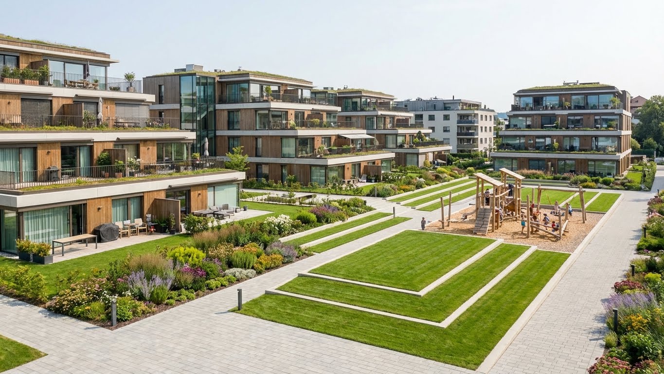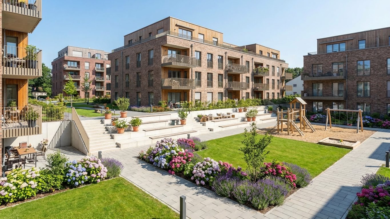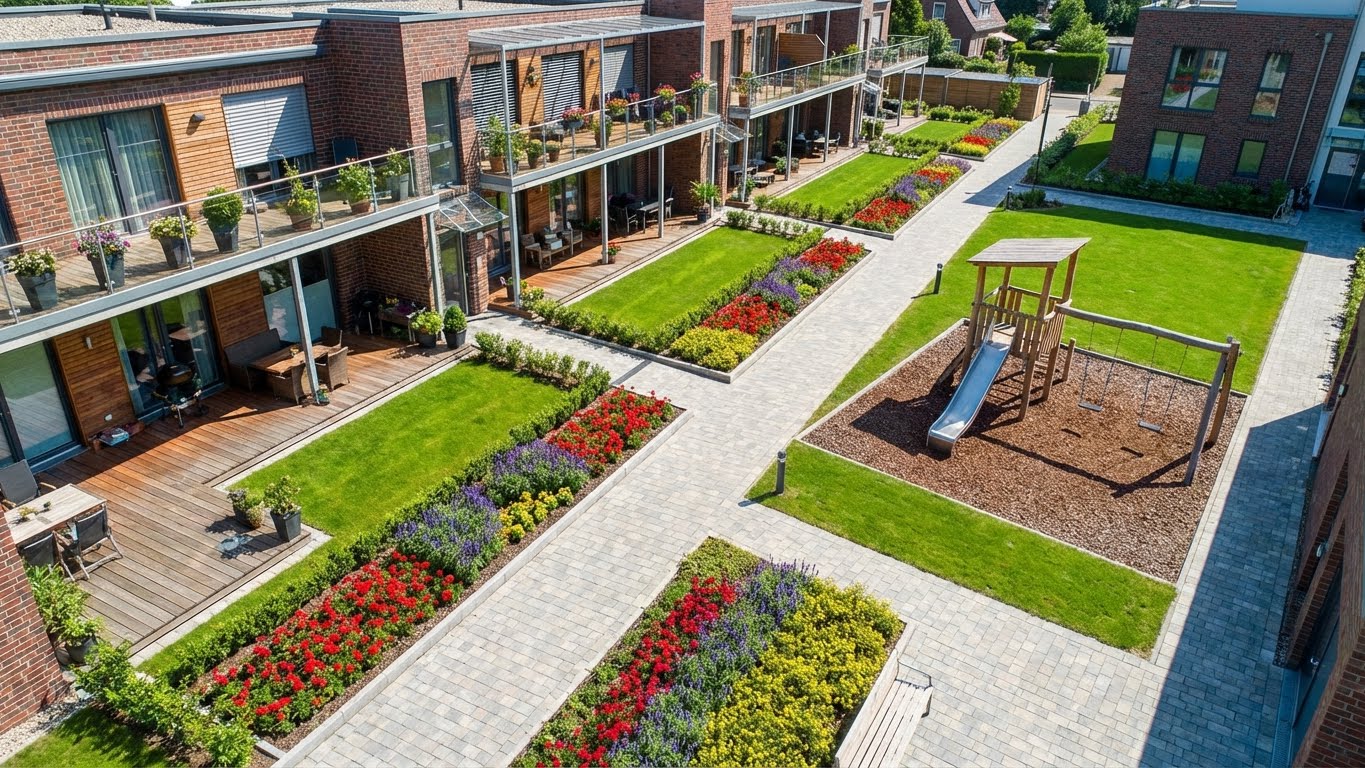 Professionelle Grünflächenpflege, modernes Design und zuverlässiger Service — damit Immobilien glänzen und Mieter gerne bleiben.